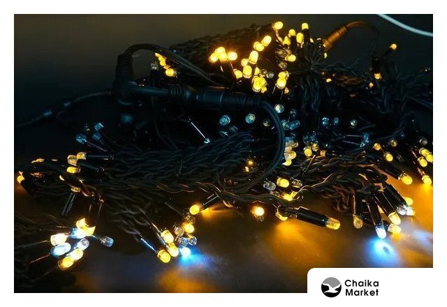 дождь (занавес), для использования в помещении/на улице, длина 6 м, 800 ламп, питание от сети, свечение мерцающее, IP65, провод черный резиновый