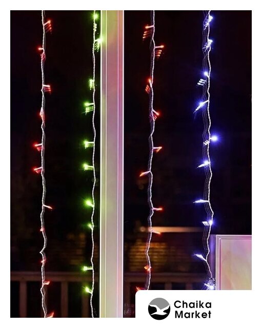 дождь (занавес), для использования в помещении/на улице, длина 3 м, 400 ламп, питание от сети, свечение мерцающее, IP65, провод белый резиновый